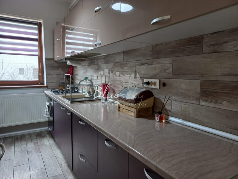 Beneficiază de centrală termică proprie pe gaz, aer condiționat și se vinde parțial mobilat .