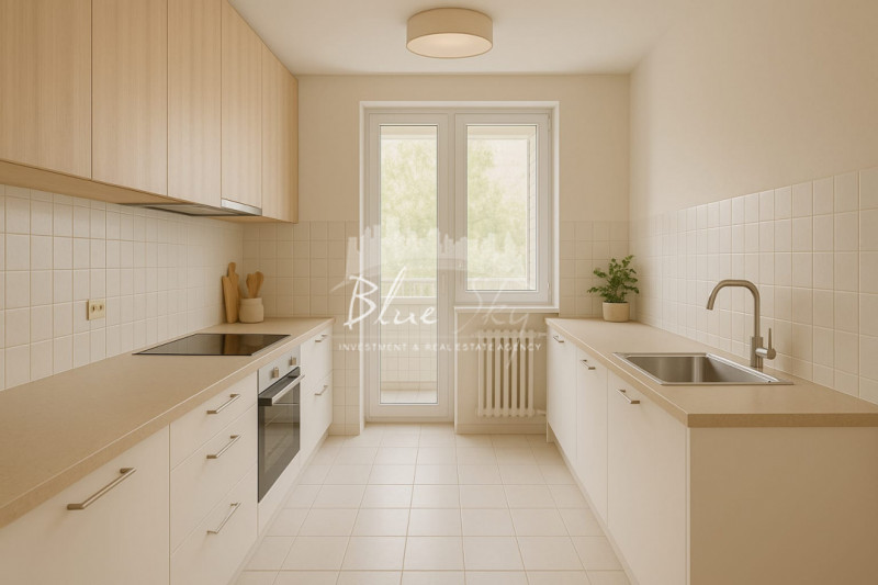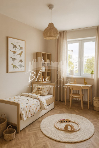 Imobilul se află într-o zonă liniștită, plină de verdeață, cu acces facil către școli, magazine și mijloace de transport. Apartamentul nu are îmbunătățiri, oferind viitorului proprietar posibilitatea de a-l amenaja după propriul gust.