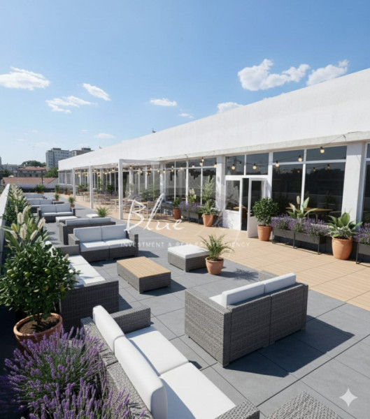 Un atu remarcabil îl reprezintă terasa circulabilă de 645 mp, un spațiu exterior ce poate completa funcțiuni diverse și poate adăuga valoare oricărui proiect, fie prin crearea unor zone de relaxare, fie ca extensie pentru activități dedicate clienților sau echipelor.